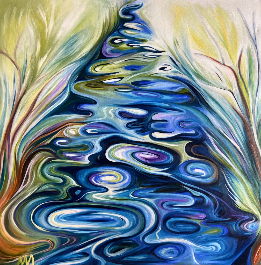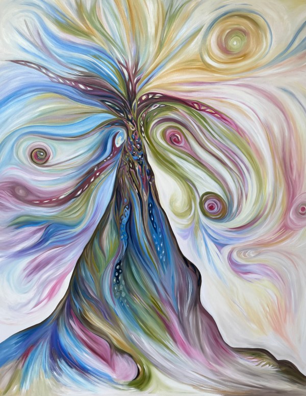 A giant in the forest full of color, light and sunshine has emerged onto my canvas – a Sanctuary Tree. This tree bloomed from my brushes like a sculpture reaching for the light… thirsty, strong and brave 🙂 . Of course this painting is about inspiring happiness and resilience, but it also has humor in it, as many of my paintings do. It is full of hidden images – what can you see?- and it hangs and drinks the light on Bainbridge Island, WA. It is an original Marianne Schovsbo painting, oil on canvas 48 x 60 inches with a 1.5 inch wrap around edge. Made with imagination and joy. If you are interested – please contact me.