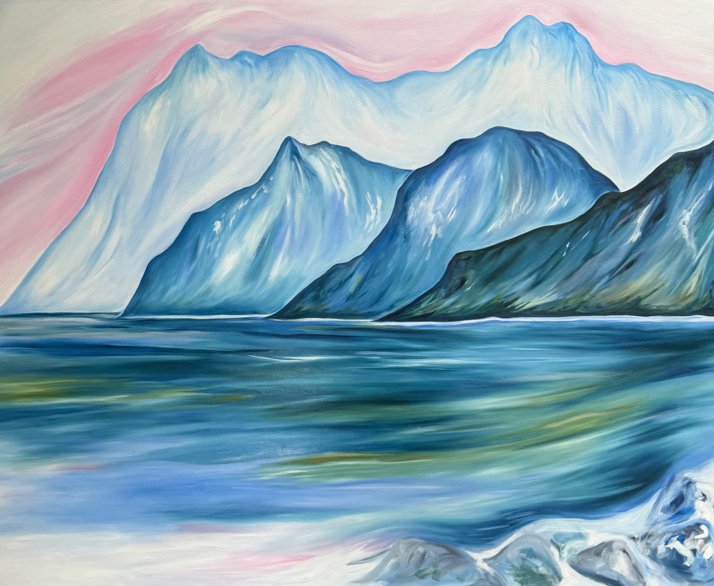 Sometimes, though, it is not possible to hop into travel mode and walk out the door with a backpack to get to these beautiful and natural places…especially when I need them. That is what inspired me to paint Mindful, a compilation, oil on canvas, modern landscape of the many mountainous places I have been to. Mindful is a 48″ x 60″ inch oil painting that aims to be a retreat in the home or office. It is a large, multi-layered painting, with wrap around edges, and it changes in color depth (because of its many layers) as the light of the room, where it hangs, changes. If you have any questions regarding this painting, please reach out to me directly.