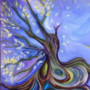 A giant in the forest full of color, light and sunshine has emerged onto my canvas – a Sanctuary Tree. This tree bloomed from my brushes like a sculpture reaching for the light… thirsty, strong and brave 🙂 . Of course this painting is about inspiring happiness and resilience, but it also has humor in it, as many of my paintings do. It is full of hidden images – what can you see?- and it hangs and drinks the light on Bainbridge Island, WA. It is an original Marianne Schovsbo painting, oil on canvas 48 x 60 inches with a 1.5 inch wrap around edge. Made with imagination and joy. If you are interested – please contact me.